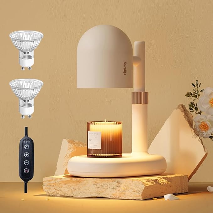 Effortlessly Melt Fragrant Candles for Lasting Aroma:This European modern-style candle warmer lamp melts scented candles more cleanly, efficiently, and safely. Using gentle heat from a 50-watt bulb, it releases the fragrance naturally within minutes—without flames, soot, or indoor pollution. Enjoy a more environmentally friendly way to fill your home with delightful aromas while reducing the risk of fire.Adjustable Timer for Safe and Convenient Use:The candle warmer features an easy-to-use timer with 2, 4, and 8-hour options, allowing you to personalize your fragrance experience without worrying about turning it off manually. Safer than traditional candle burning, this electric wax melt warmer is perfect for busy lifestyles or nighttime relaxation.Customizable Brightness Levels for Precise Melting:With four adjustable brightness settings, the candle warmer lamp allows you to control the heat intensity. Brighter light melts candles faster, while lower settings provide a slower, longer-lasting fragrance release. Perfect for creating a calming ambiance during yoga, reading, working, or simply unwinding at home.